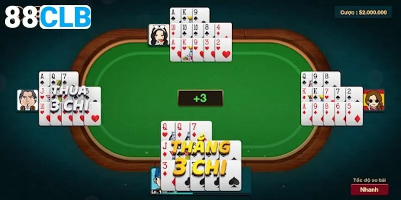 Game được chơi bằng bộ bài tây 52 lá, không có Joker. Trò chơi có từ 2 đến 6 người tham gia, mỗi người sẽ được chia 13 lá bài. Nhiệm vụ của bet thủ là xếp các lá bài đó thành 3 chi hợp lý nhất để giành chiến thắng.